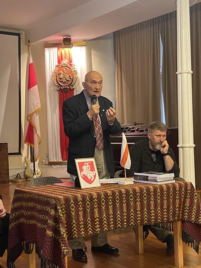Сп. Павал Шурмей вядомы не толькі нам, але і ўсяму беларускаму грамадзтву, як кіраўнік знакамітага Палка імя Каліноўскага, што сёньня ваюе ва Украіне супроць расейскіх агрэсараў. Павал, родам з Ліды, вядомы беларускі спартовец-вясьляр, мае багаты вопыт непасрэдага ўдзелу ў баявых дзеяньнях ва Украіне, быў на фронце паранены. З ягонага аповяду прысутныя даведаліся, ў якіх умовах ваююць беларускія ваяры, пра тыя цяжкасьці , якія даводзіцца перажываць, пра тое, якую дапамогу сёньня патрабуюць і заклікаў аказваць гэтую дапамогу. Таксама распавёў пра апошнія зьмены ў арганізацыі кіраўніцтва Палком, калі было вырашана перайсьці ад персанальнага кіраўніцтва да стварэньня кіруючай структуры, што, як мяркуецца, больш адпавядае патрэбам часу і можа палепшыць пасьпяховаць вайсковых дзеяньняў і пытаньняў забясьпячэньня Палка. Сам Павал з сямьёю мусіў прыехаць ў Амэрыку, каб захаваць амэрыканскае права на жыхарства, але плянуе вярнуцца ва Украіну. У прысутных да Паўла таксама было шмат пытаньняў і пажаданьняў, на якія ён ахвотна і грунтоўна адказваў.